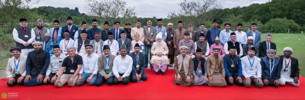 Last row from right to left (Leftside from Huzoor aba): Syed Shoaibullah sb, Mudassar Ahmed sb (Qaid Tarbiyat), Munawar Ahmed sb, Shahid Mahmood Kahlon sb (Murabi silsila)